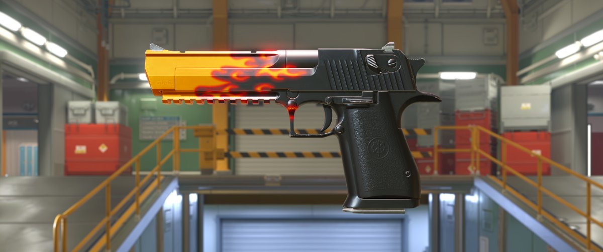 An absolute classic, the Desert Eagle | Blaze skin is defined by its iconic roaring flame pattern. The finish transitions from bright yellow at the muzzle through intense orange to red at the grip, creating a stunning visual of controlled fire.