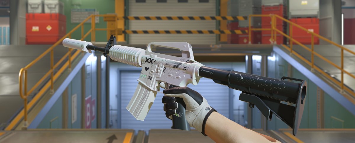 The M4A1-S | Printstream is arguably the definitive white skin for the silenced rifle. Its design mimics a high-gloss, liquid-like finish where pure white and deep black flow together in a smooth, marbled pattern, resembling ink dispersing in water.